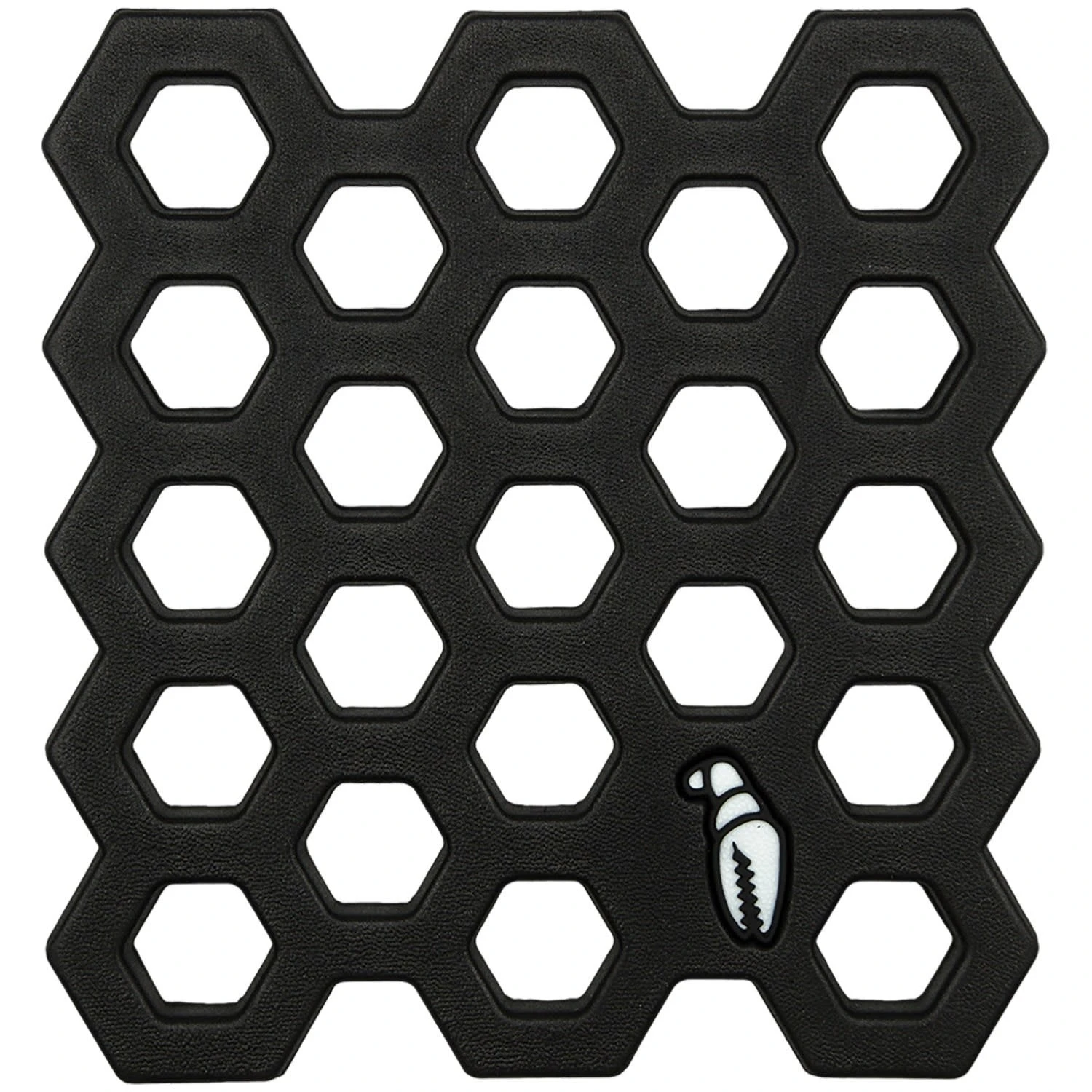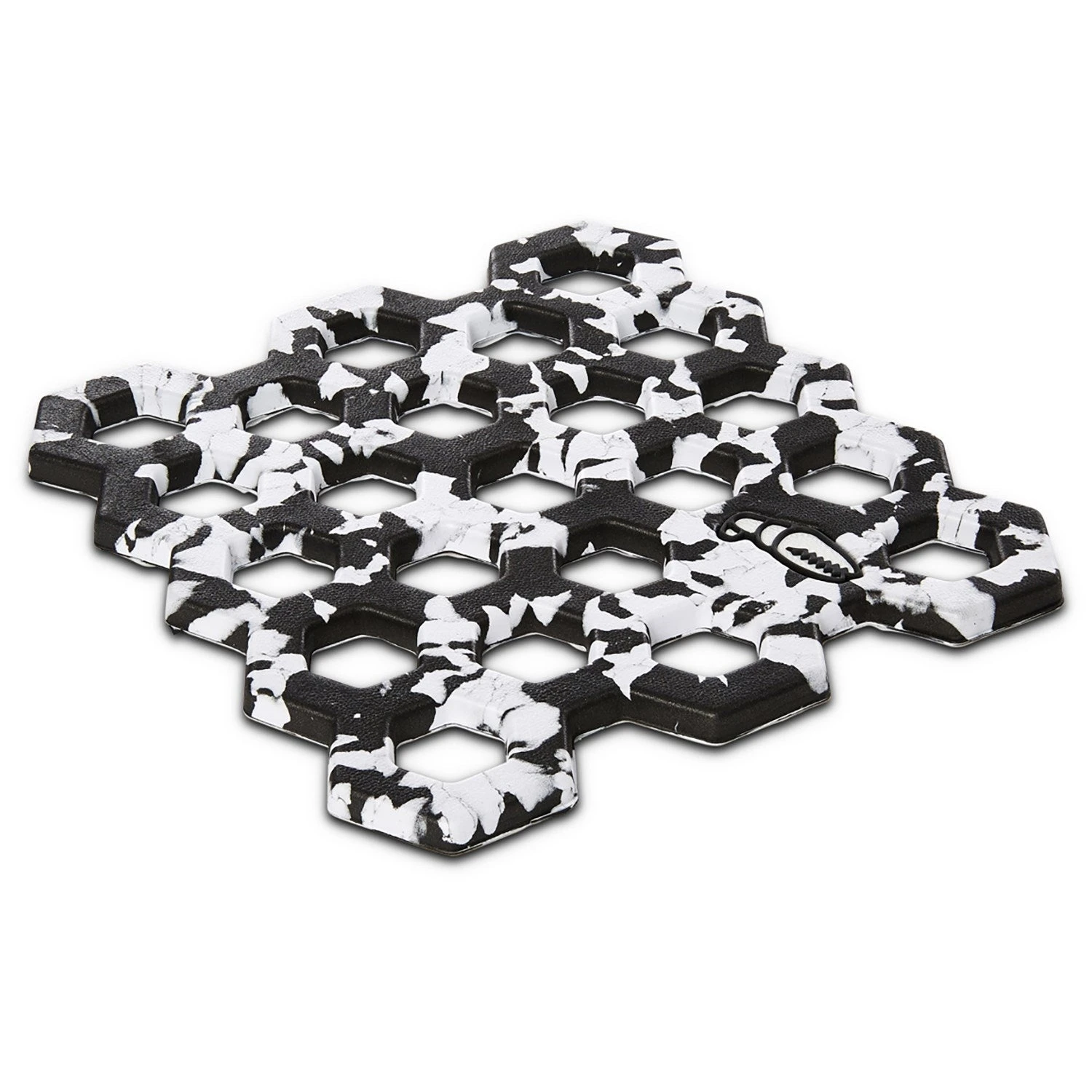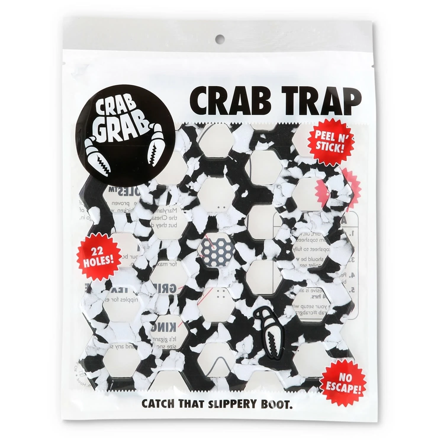 • Hexaholesâ„¢ – Inspired by the proven pattern of Maryland-style chicken wire traps of The Chesapeake Bay. Boot treads go in, but they don’t come out.