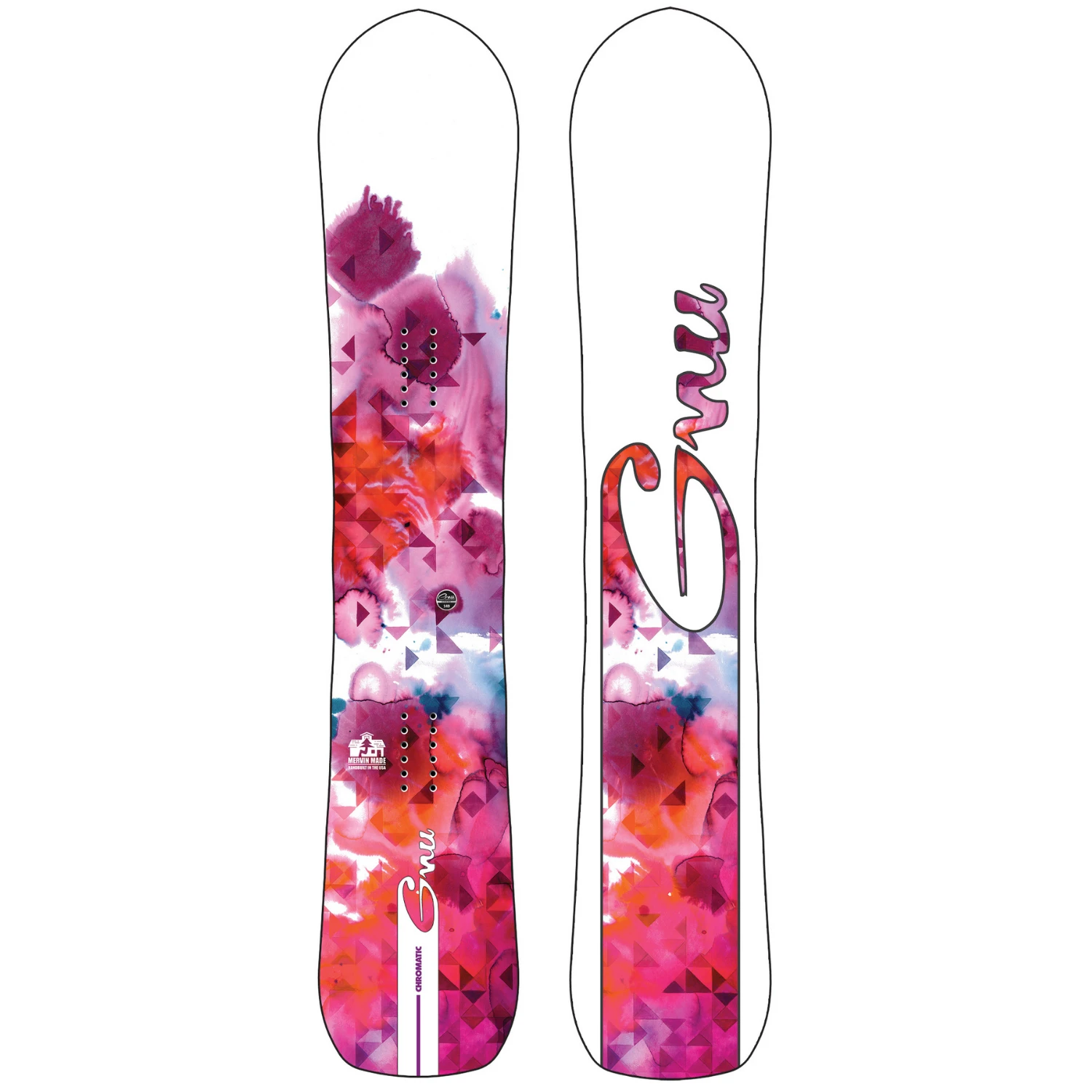 The Chromatic gracefully blurs the lines between freestyle and freeride. It carves circles around the competition, floats in pow, and encourages progression with the Original Banana rocker/camber hybrid contour and Magne-Traction®. Advanced geometries, an all mountain directional shape, and artwork by Corinne Weidmann bring the magic of the mountains to life, rainbow glow and all.