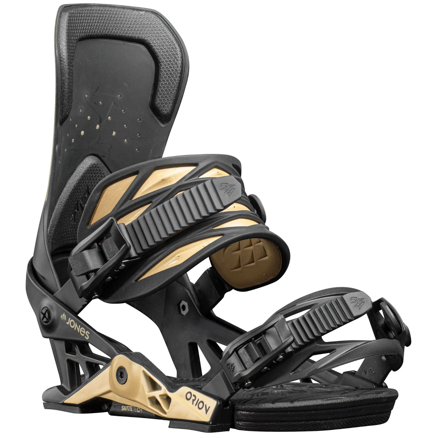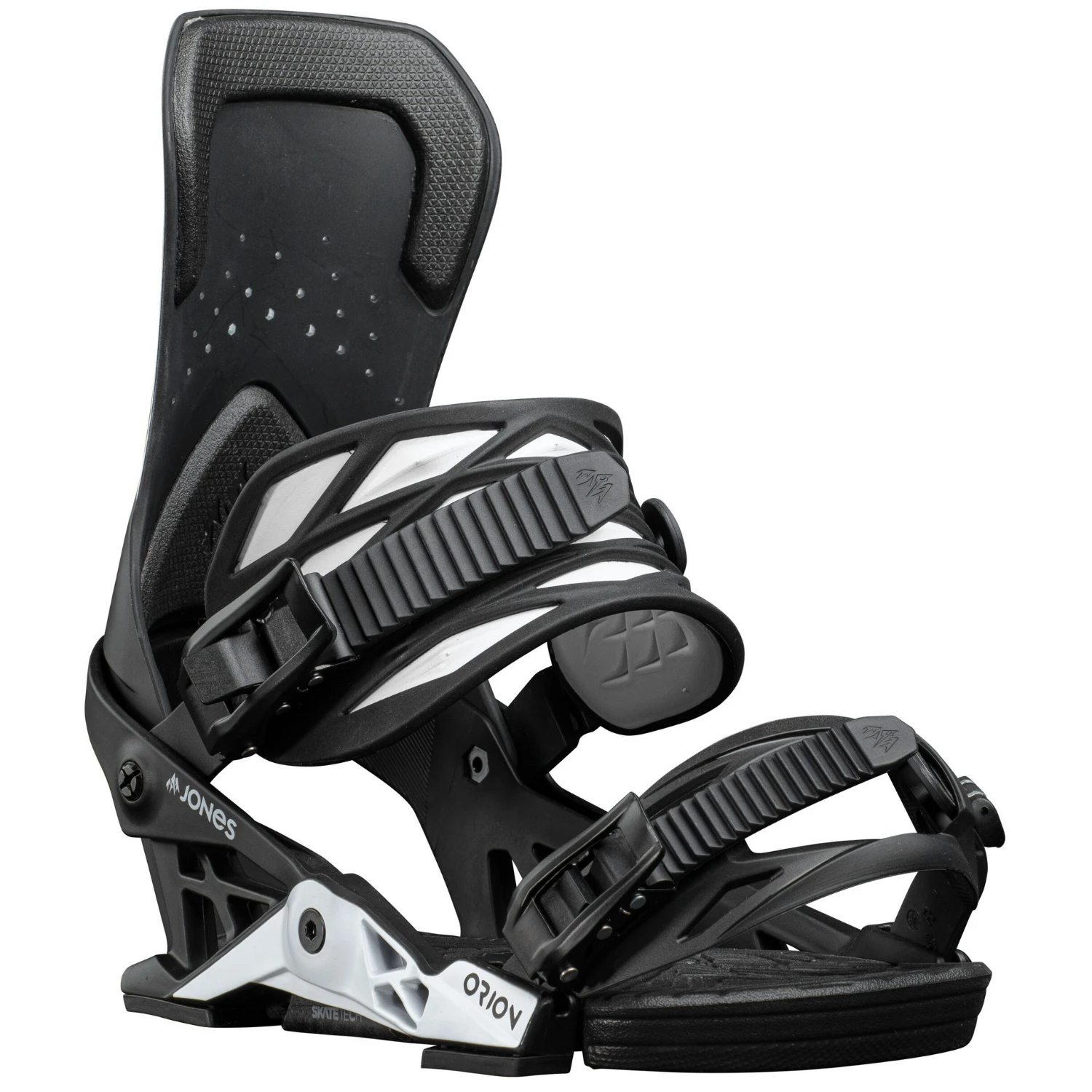 The new Orion binding is designed for fun focused freeriders who are looking for a comfortable and durable freeride binding with a freestyle friendly medium soft flex. The Orion features SKATETECH technology that transfers your energy directly to your edges through Jones’ most advanced Hanger 3.0. The Hanger 3.0 is wider for better boot fit and has an expanded bushing footprint for better energy transfer. The Orion’s Progressive Flex Highback is stiffer at the bottom and gets progressively softer toward the top for a precise and playful binding feel. The Orion can be set up in Surf mode or Freeride mode by switching bushing and interchanging the Comfort Flex Ankle Straps between bindings. The Comfort Flex Ankle Straps are 3D molded to evenly distribute strap pressure and eliminate strap bite. The Orion is also fitted with our new 3D Flex Fit 2.0 toe straps. The low profile 3D Flex Fit 2.0 toe strap is slightly stretchy to conform to any boot shape.